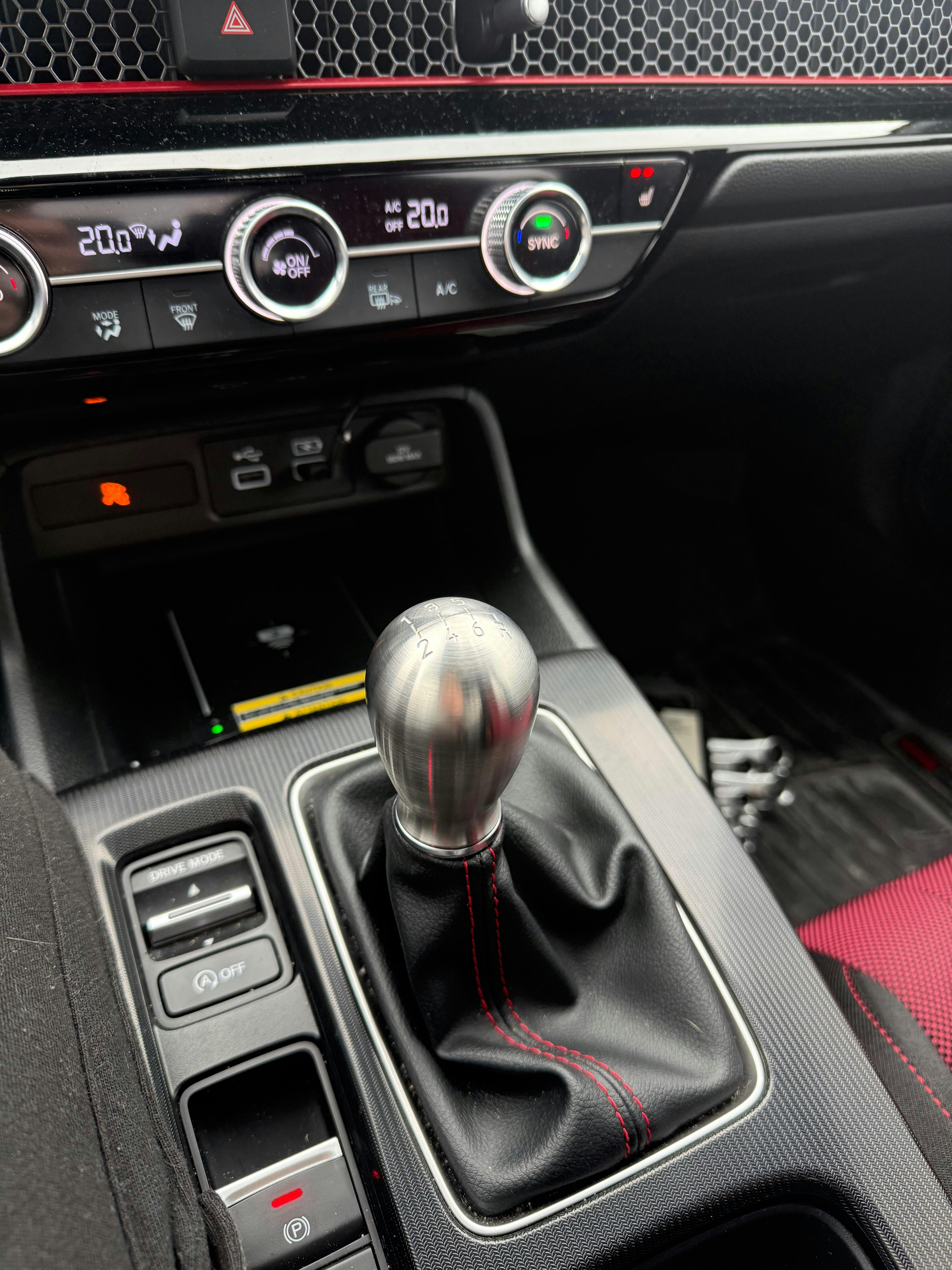 Created from a solid billet piece of stainless steel, keeping the original shape in the FK8 facelift and FL5 gear knob size of the standard gear knob yet increasing the weight to improve gear throw and feel when shifting between gears.